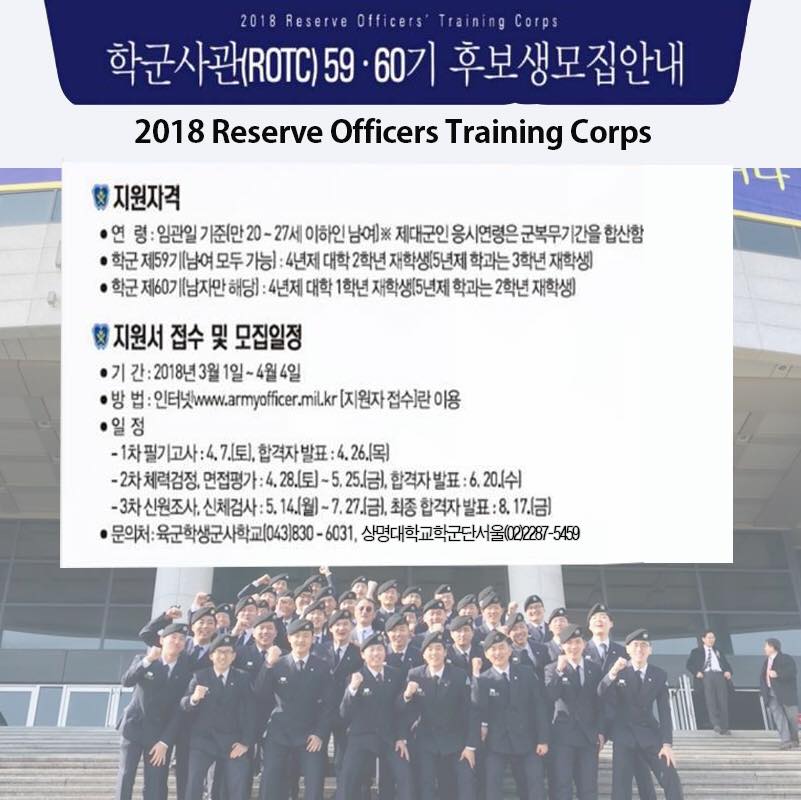 - 문의처 : 육군학생군사학교 (043)830-6031, 상명대학교학군단서울(02)2287-5459