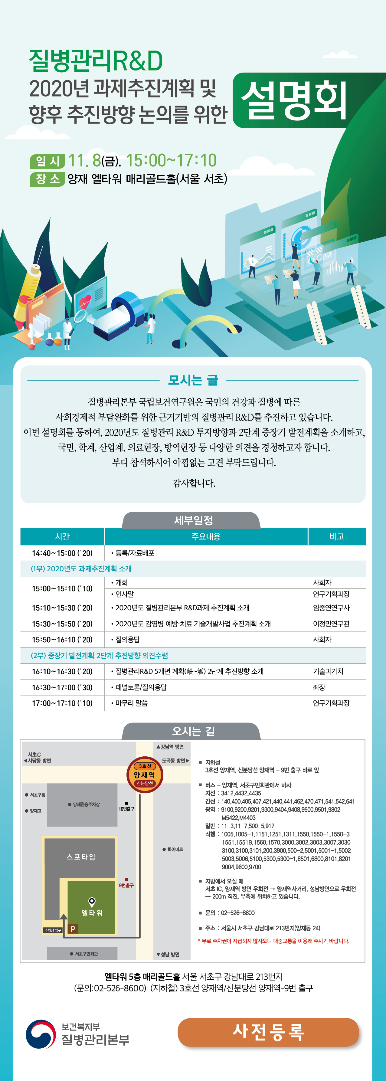 - [질병관리본부] 질병관리RD 2020년 과제추진계획 설명회 개최 안내