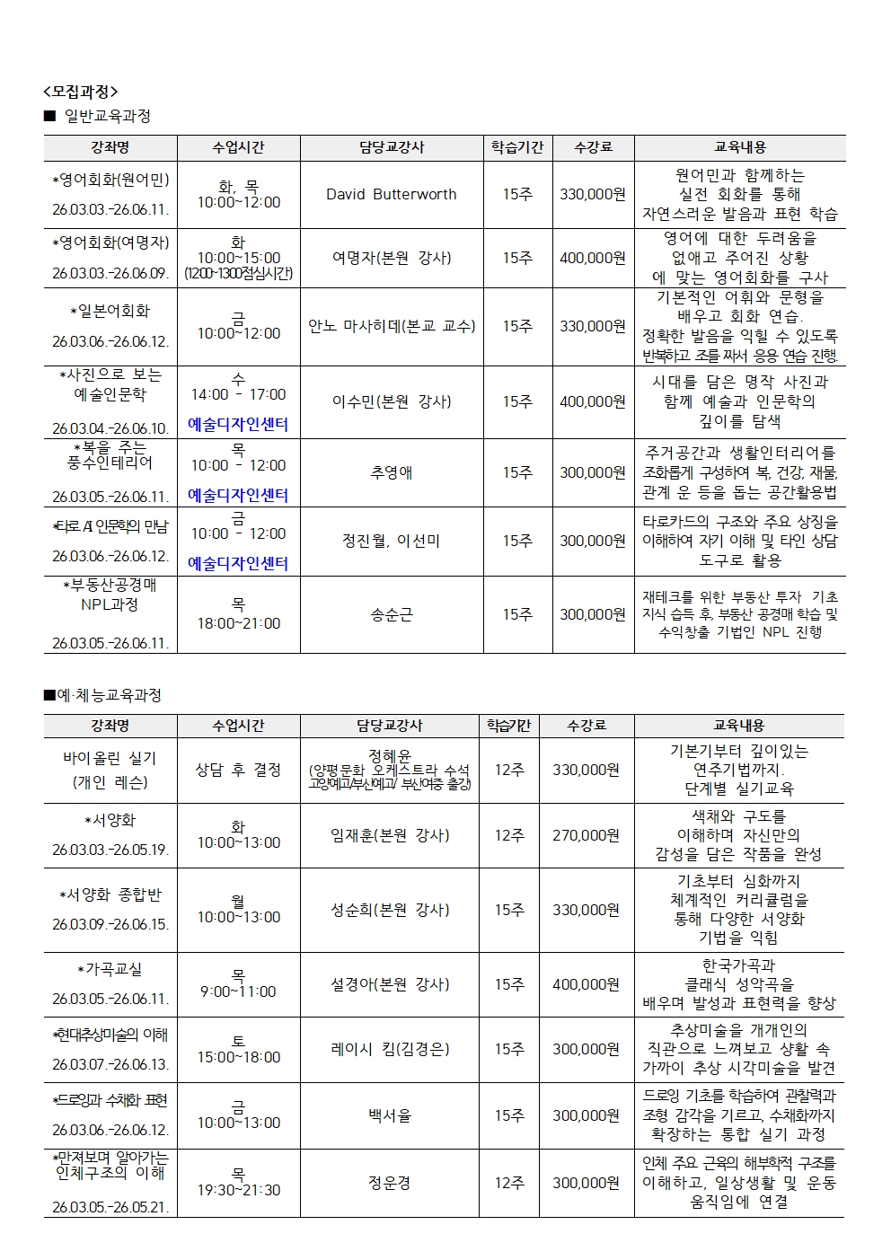 - 수강신청 링크: 일반과정 및 포토아카데미